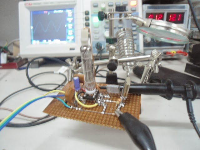 حصلت قبل فترة على بعض الصمامات المفرغة وهي روسية الصنع نوع 1P24B و 1ZH29B... واستطعت الحصول على معلومات عن تركيبها وبياناتها من الموقع التالي http://www.radiomuseum.org/tubes/tube_1p24b-v.html هذه الصمامات خماسية والتسخين فيها مباشر والشبكة فيها عبارة عن قضبان بدل ان التركيب المعتاد لها والذي هو عبارة عن اسلاك تلف حول الاقطاب ... عموما ... حااولت اجراء بعض التجارب على هذا النوع من الصمامات ... فكانت تجربتي الاولى تصنيع مذبذب كرستالي 14 ميكاهرتز ... والغرض من التجربة التعرف على كيفية التعامل مع دوائر الصمامات كان علي اولا تصنيع مجهز قدرة 60 فولت لتشغيل الصمام اضافة الى فولتية 2.4 فولت لتسخين شعيرات التسخين والتي هي الكاثود في نفس الوقت ... كما ابتكرت طريقة لتثبيت هذه الصمامات على البوردة باستخدام قاعدة الدوائر المتكاملة .... وبعد عدة تجارب استطعت انجاح هذه التجربة .... عموما كانت ممتعة ... والعمل مع الصمامات المفرغة له سحر خاص .... وقد شجعتني النتائج على التفكير بصناعة راديو اعتمادا على هذه الصمامات |