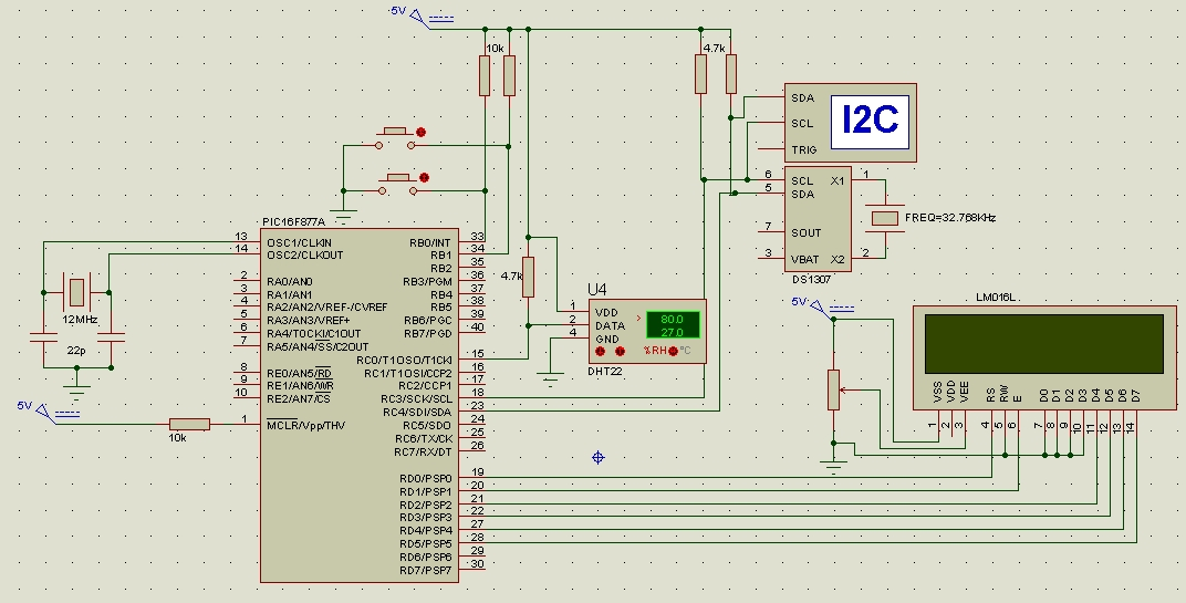 كنت قد وضعت موضوعين مستقلين في المنتدى الأول يتحدث عن ربط الحساس DHT11 وهو حساس حرارة ورطوبة بالمتحكمين PIC16F84A & PIC16F877A والموضوع الثاني يتحدث عن ربط المتحكم PIC16F877A بالمتكاملة DS1307 من أجل الوصول الى ساعة رقمية حقيقية.