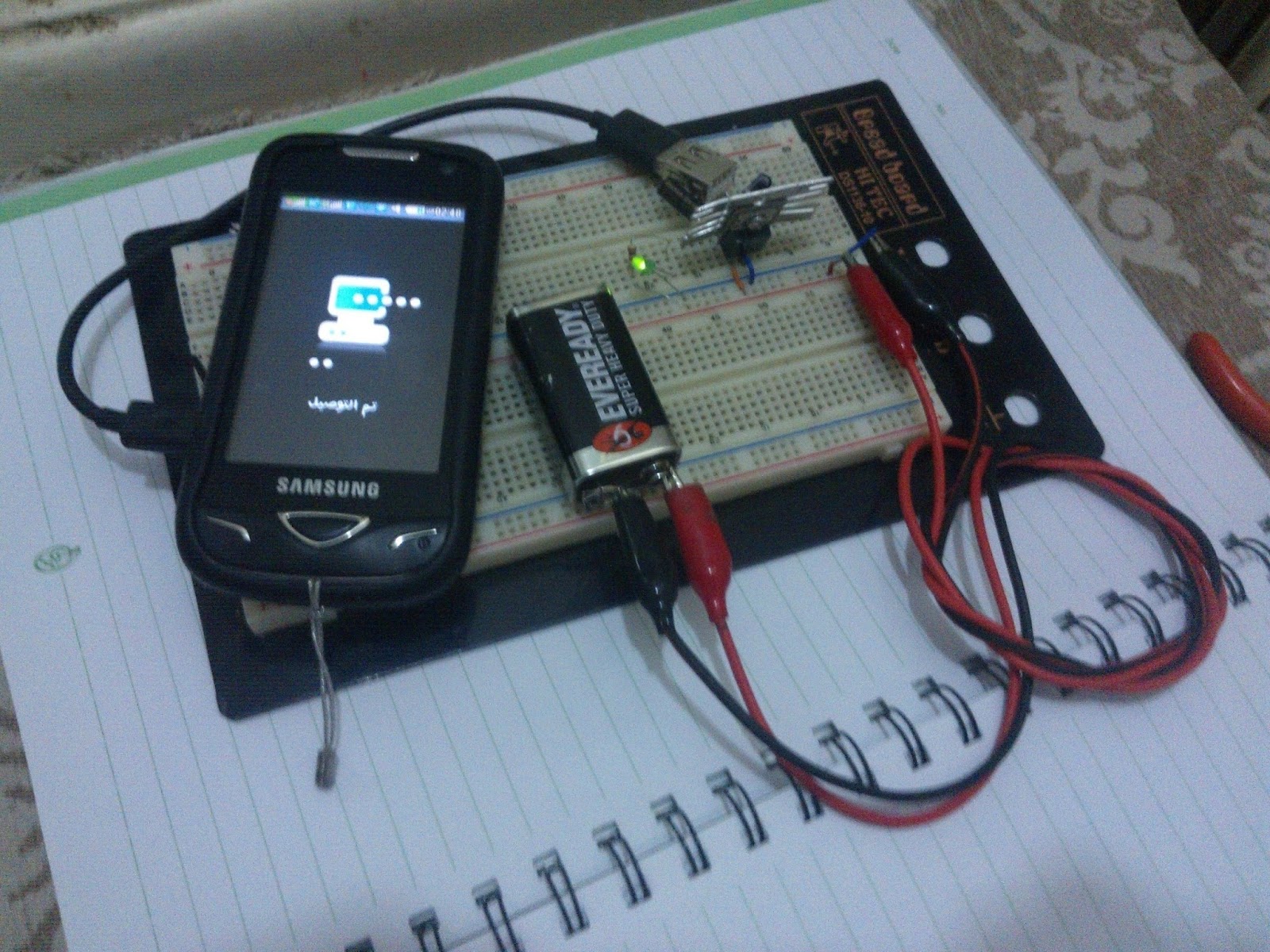 ال دائرة تعمل على مصدر جهد 9 : 12 فولت وبتم توفير هذا الجهد بالبطارية 9 فولت، والعنصر الاساسي في الدائرة هو 7805 وال دائرة توفر للموبيل جهد 5 فولت وامبير مناسب للموبيل، الدائرة فعالة ومجربة ويمكن ايضأ اضافة بطارية قابلة للشحن للدائرة وبذلك اصبح معانا بطارية طوارئ للموبيل الصورة العملية للشاحن: http://3.bp.blogspot.com/-ltk4r-nEEJ.../WP_000320.jpg الدائرة الالكترونية: http://4.bp.blogspot.com/-DB9rQvmoua...VU/s1600/9.JPG الفيديو العملي: https://youtu.be/MvjfIOlTHdk |