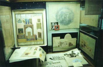 إنها بعض صور ورسوم حسن فتحي الموجودة الآن بأرشيفه -المثير للجدل- بالجامعة الأمريكية بالقاهرة. ويظهر في الصورة رسومات وصور بعض مسرحيات حسن فتحي التي ألفها بنفسه، وصمم بعضا من ملابس شخصياتها.. كما تظهر رسوم بعض مشروعاته الشهيرة ذات القباب والأقبية