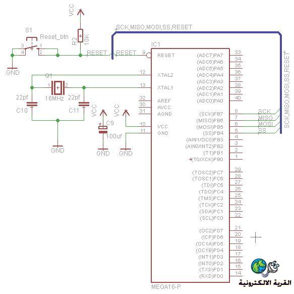 الدارة التالية هي دارة المبرمجة و قد قمت بتطبيقها على المتحكم ATMEAG16 الشهير