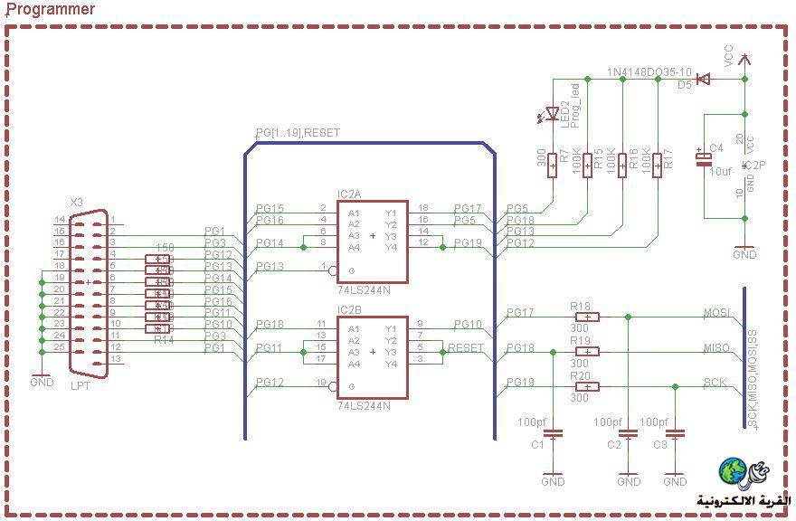 هذه المبرمجة هي مبرمجة تفرعية ( تعتمد على المنفذ التفرعي للحاسب LPT Port ) و هي مدعومة من قبل البرنامج الشهير BASCOM AVR