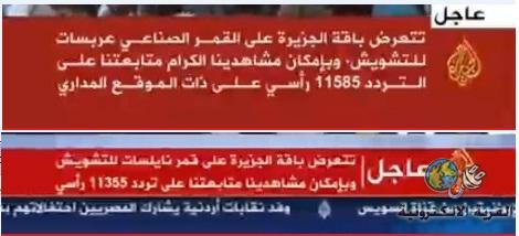 منذ البارحة التشويش على قناة الجزيرة على رأس الساعة فقط مع أى أخبار تتناول ما يحدث فى ليبيا على القمر نايل سات و عرب سات و بعد أنتهاء أخبار ليبيا ينقطع التشويش