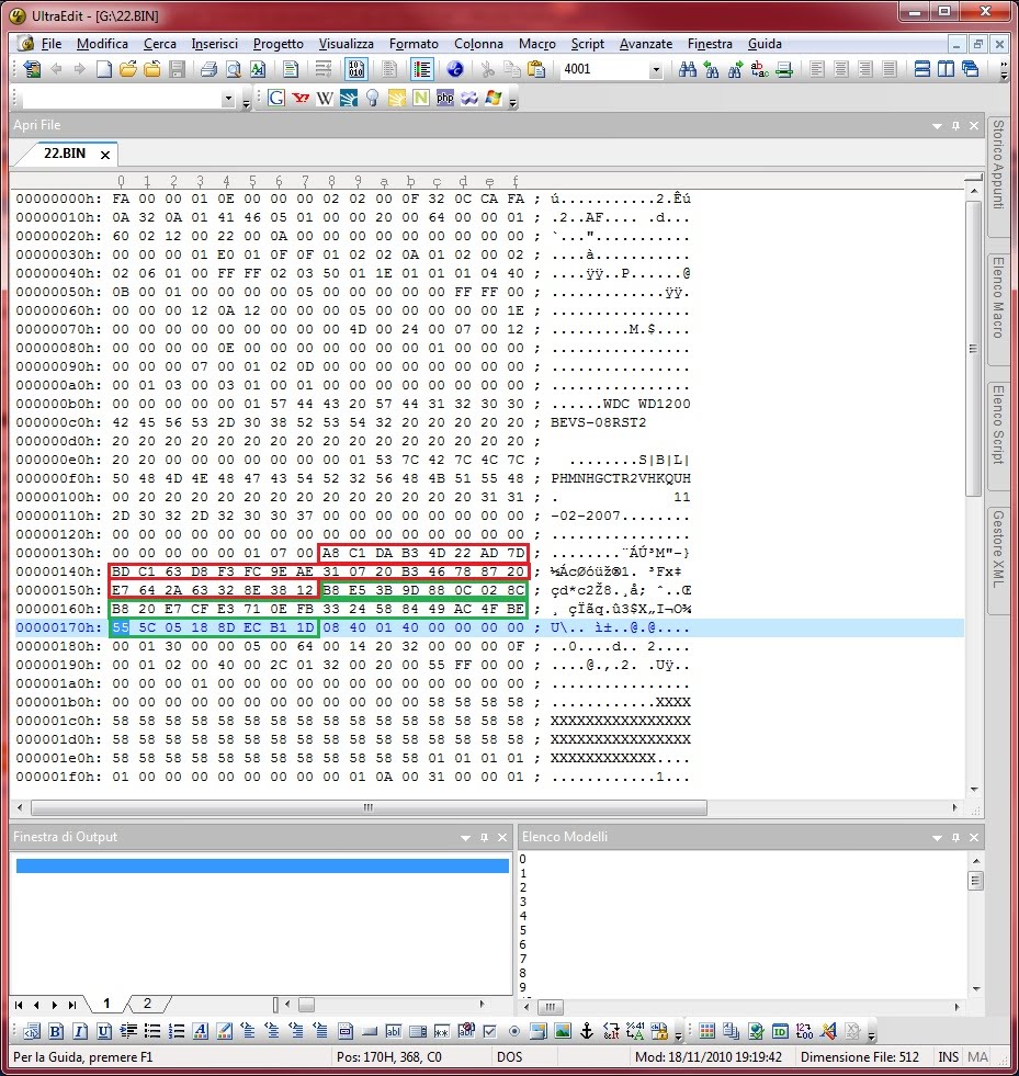 الأوفست ممكن أن يختلف معك ولكن الترتيب متشابه .. فنجد 0x137 هو أوفست القيمة 07 وهى تعني أن الحماية على القرص الصلب عاليه وكلمة السر هى 32 بايت المعلمين باللون الأحمر لكلمة سر المستخدم واللون الأخضر لكلمة السر الأساسية