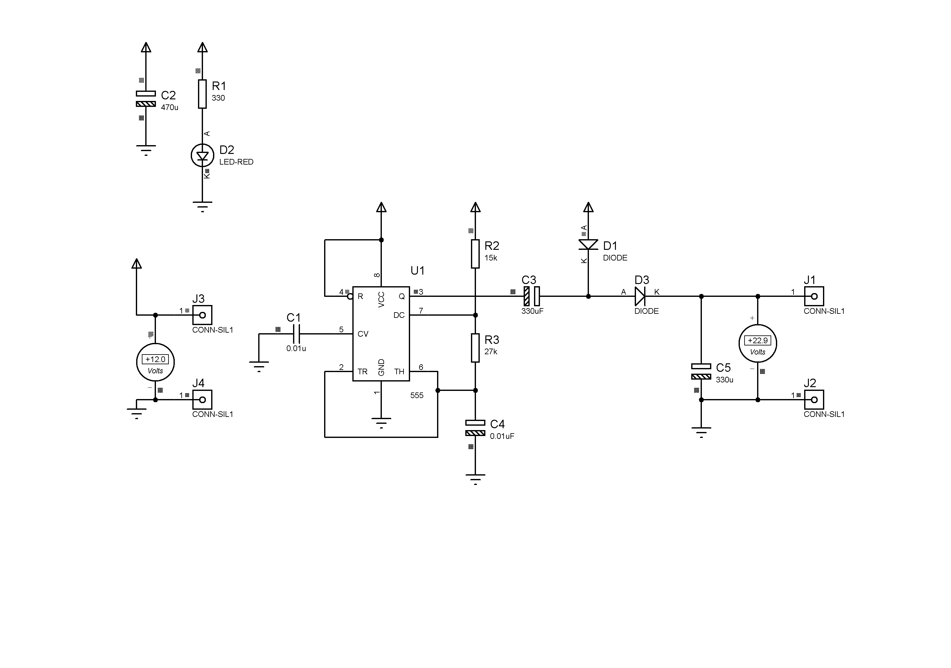 فكرة الدائرة معروفة جدا بمضاعف الجهد : طبعا باستخدام مكثفات : الاخ (علاء) لديه 12V ويريد ان يجعلها 24V فماذا يفعل الترانزستور اذا كان المصدر اصلا 12 (صحيح تمت مضاعفته بالمذبذب والمكثفات ) لكن بتيار قليل جدا لايتجاوز 100mA والمطلوب منا مجهز 4A بجهد 24V من اصل بطارية 12V |