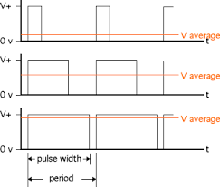 إشارة PWM هذه عبارة عن جهد متغير في الزمن يأخذ قيمتين لا ثالث لهما هما :