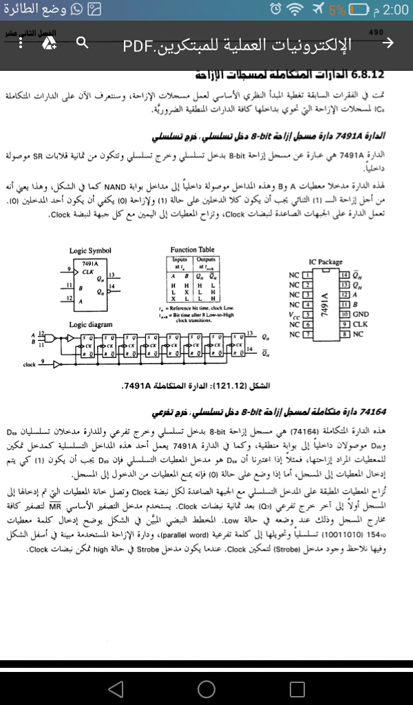 مسجل الازاحة مبدأه بسيط وبشكل مختصر هو عبارة عن مجموعة تقوم على تجزئة النبضات المراد نقلها او المعطيات الى عددالمنافذ المتاحة لها اي خرجها ومن ثم دفع المعطيات المدخلة اليها تزامنا مع الجبهة الصاعدة لكل نبضة clok وفق المجموعة 74ls595 مسجل الازاحه قد يكون بدخل تسلسلي اي مدخل واحد وعدة مخارج او بالعكس . ماهو رقم المجموعة التي تريدها اقرأ ما عرضه عليك الاخ برعي من مشاركة ماجد لكن لا تاخذ به فالاصل دفع المعطيات وليس مسكها كما قال بل تسجيلها في القوادح المضمنة بها ويجب معرفة الخانة الاولى من الاخيرة عكس ما قال ايضا .... لكي لا اشرح هذه المجموعة اكثر احتاج لمعرفة رقم المجموعة لسهولة الشرح لكم . تحياتي |