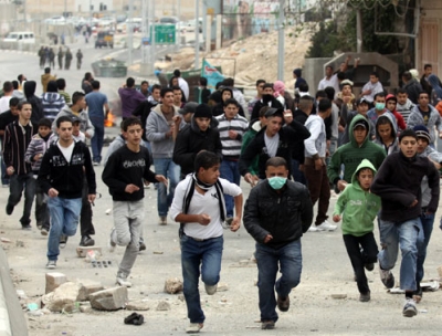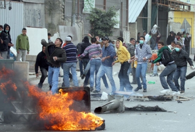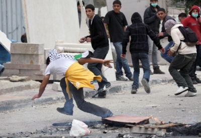وقال شهود عيان أن الشُّبان صعدوا إلى الأسطح القريبة من المكان وشرعوا بإلقاء الحجارة وإطلاق المفرقعات النارية على جنود الاحتلال.