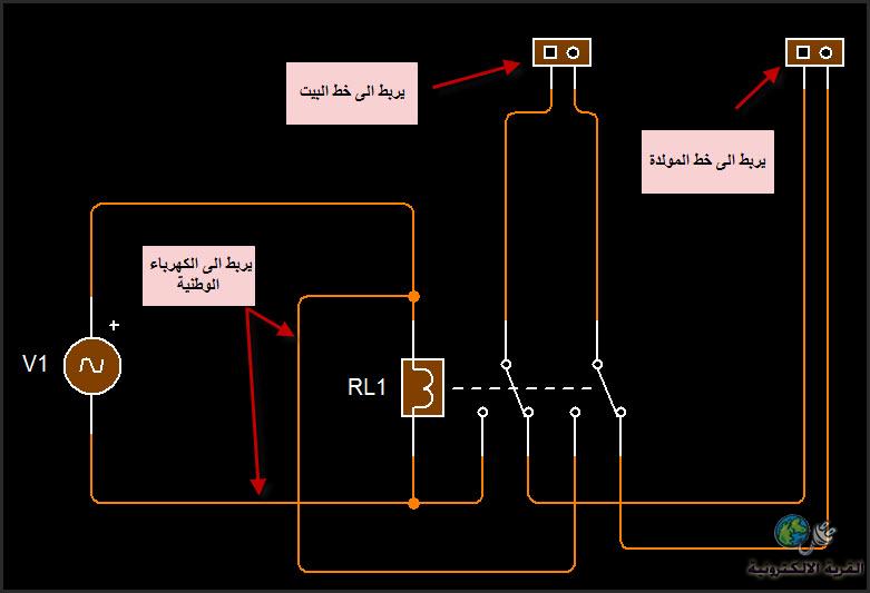 تفضل اخى رسمت لك الطريقة الطرف المتغير يذهب الى خط المربوط الى البيت وخط الكهرباء الوطنية مع ملف الريلاى يتم توصيلهما مع بعض والخط الاخر الى المولدة كما هو موضح